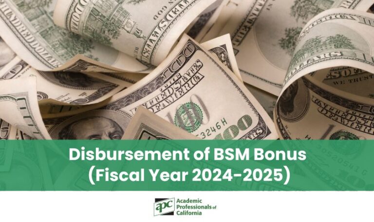 APC has received notice of the 2024-2025 Budget Shortfall Mitigation (BSM) Bonus payment of $271.69 for full-time Unit 4 employees, prorated for part-time staff. Eligible employees in active or on-leave status as of May 1, 2025, should receive payment between October 24 and November 1. This bonus is a direct result of past APC members’ collective bargaining efforts.