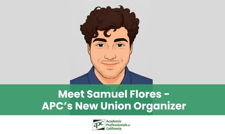 Samuel Flores joined APC in September as a Union Organizer and Labor Relations Representative. With experience organizing across multiple unions and campuses, he now works directly with APC members statewide, supporting organizing efforts, contract enforcement, and member advocacy across the CSU system.