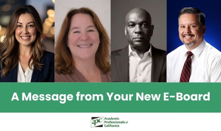 APC’s newly elected Executive Board thanks members for their participation and trust. As they begin their term, the Board is committed to strengthening the union, supporting stewards, improving communication, and advocating for fair compensation, job security, and better working conditions across the CSU.